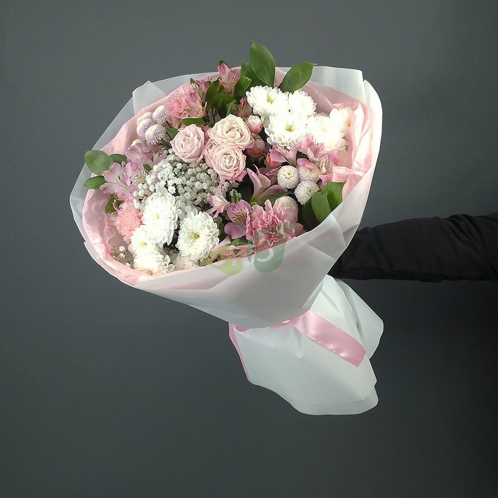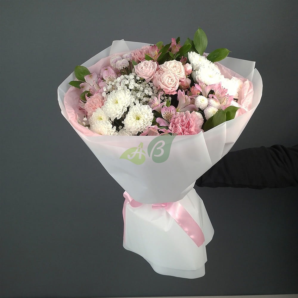 Нужны цветы в подарок – сборный букет «Мелодия рассвета» это красивый, нежный и естественный букет из кустовы роз, хризантем и альстромерий, который можно дарить по любому поводу.